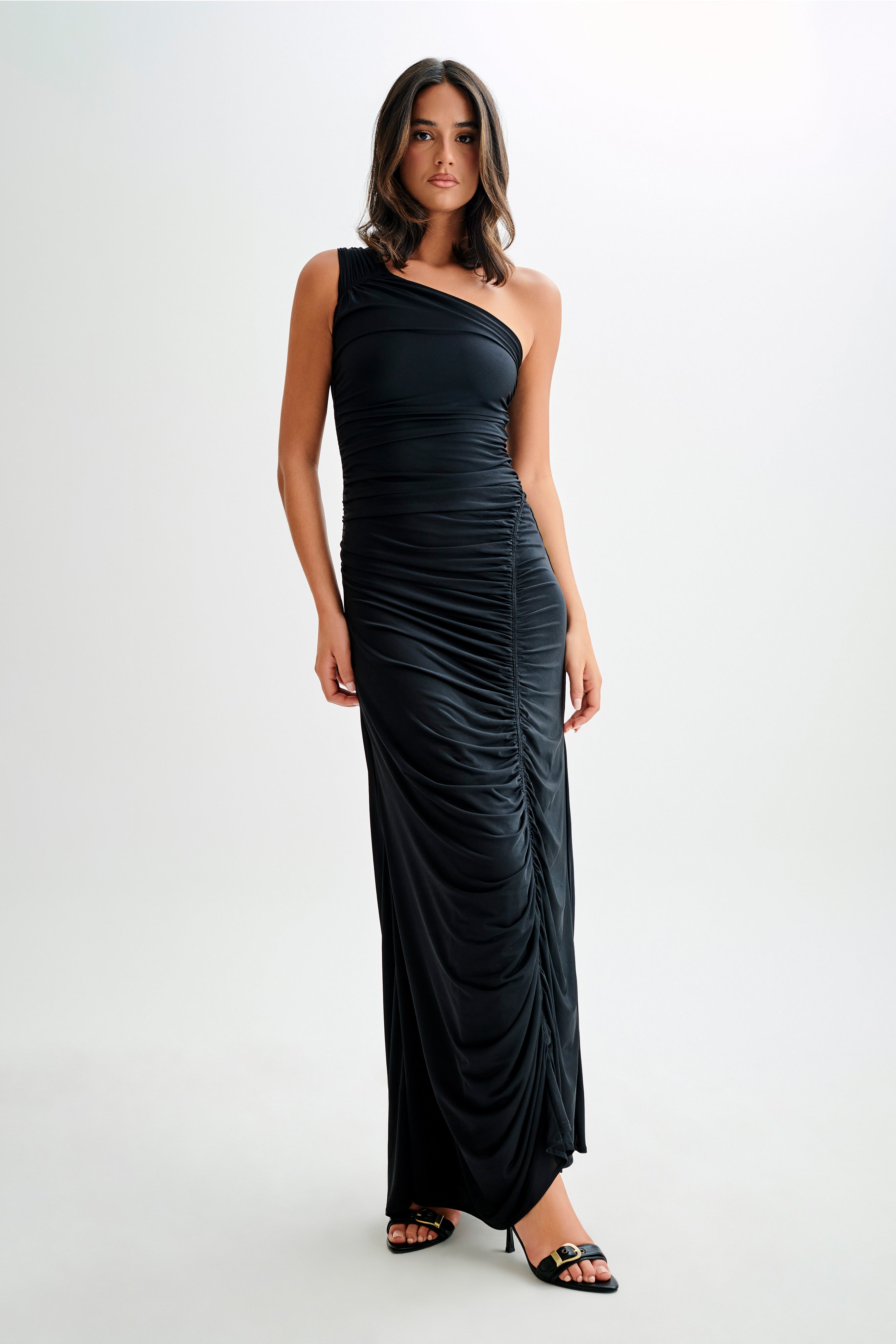 Capri Gathered Slinky Maxi Dress - Black